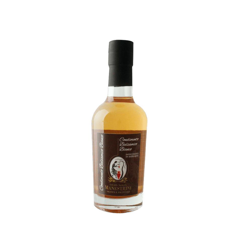 Ottenuto dal mosto di uve bianche concentrate, miscelate sapientemente ad aceto di vino maturato lungamente in botti di rovere in modo da ottenere un colore dorato. La sua caratteristica più evidente è quella di lasciare invariato il colore delle pietanze regalando profumi e sapori fruttati delicatamente acidi.